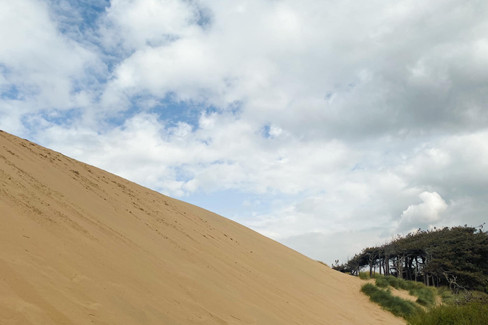 I grew up far from the sea, in a landscape that felt stable and grounded. Here, nothing feels completely still. The wind is always present, shaping the land grain by grain, carrying the sand across the beach and over the dunes. Walking into it sometimes feels less like a walk and more like negotiating with the elements.